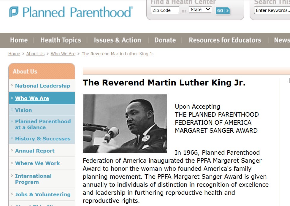 • Source 2: The Margaret Sanger Award: An Inside Look at King’s Connection to Planned Parenthood (Planned Parenthood archives)