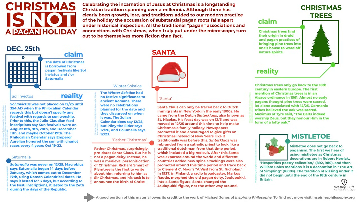 This article serves as a clarification and refinement of our previous discussions on the so-called “pagan roots” of Christmas. In light of updated research, including the work of Christian apologist Wesley Huff and broader historical scholarship, we affirm that while some seasonal customs may have pre-Christian analogs, the holidays of Christmas and Easter are not pagan in origin or practice. This aligns with our 2023 position that these are distinctively Christian observances, grounded in the birth and resurrection of Jesus Christ.